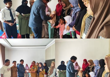 Penyerahan bantuan dana tunai kepada anak yatim dan piatu di Desa Satui Barat.