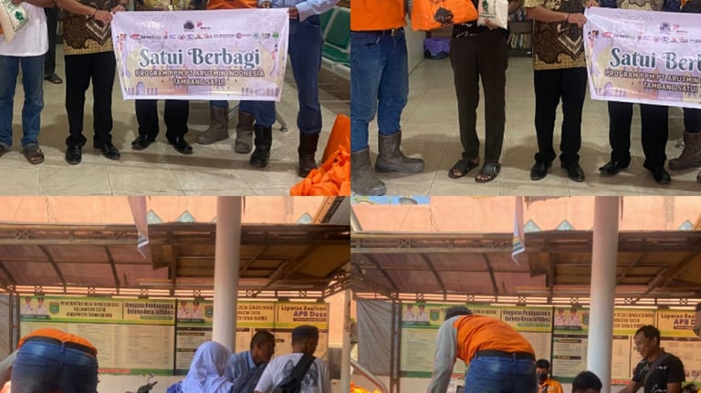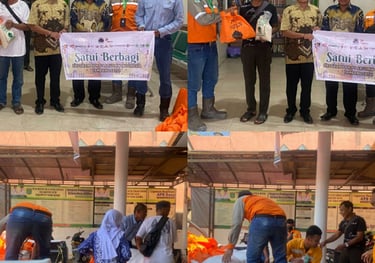 Penyerahan bantuan berupa paket lebaran bersama mitra kerja tambang Satui di 14 Desa ring 1 PT. Arutmin
