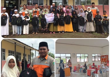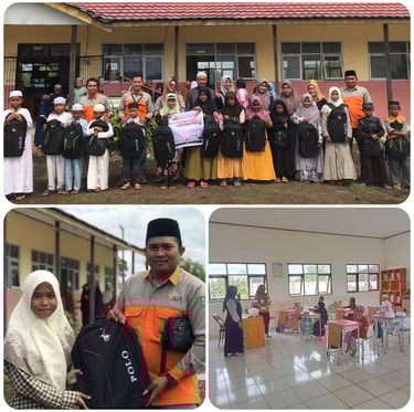 Penyerahan bantuan perlengkapan sekolah kepada siswa-siswi tidak mampu di SDN 1 Desa Satui Barat