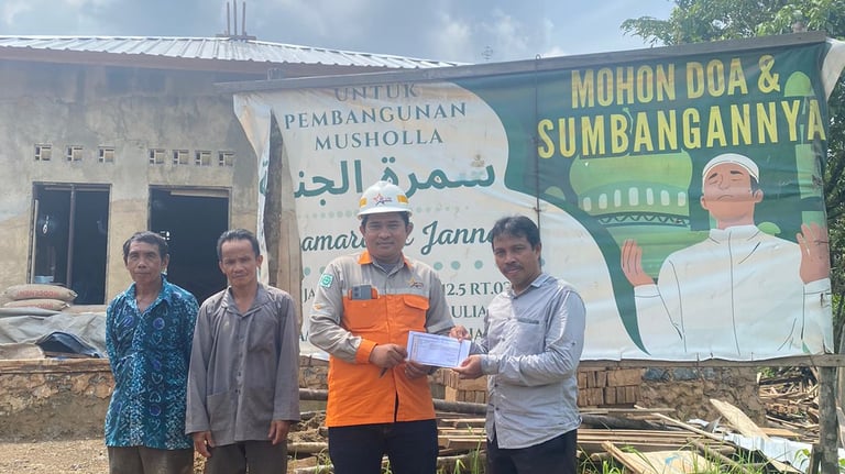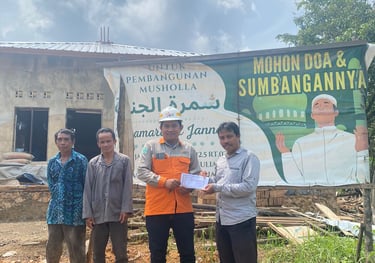Bantuan dari BBL untuk pembangunan mushola di desa Makmur Mulia